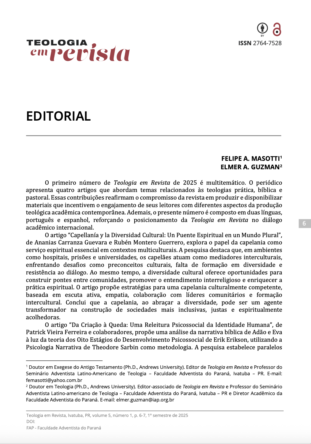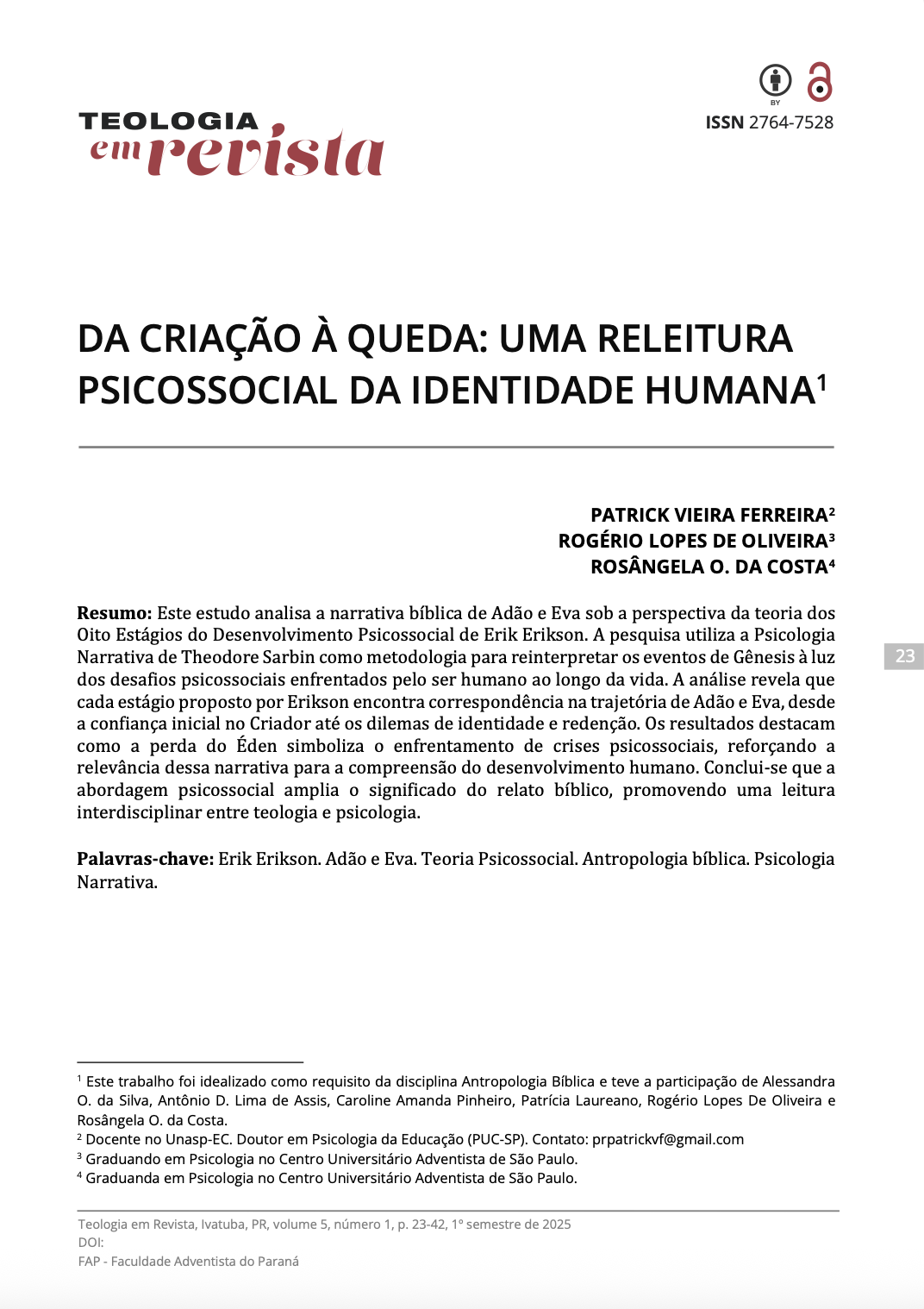- Da criação à queda: Uma releitura psicossocial da identidade humana;
