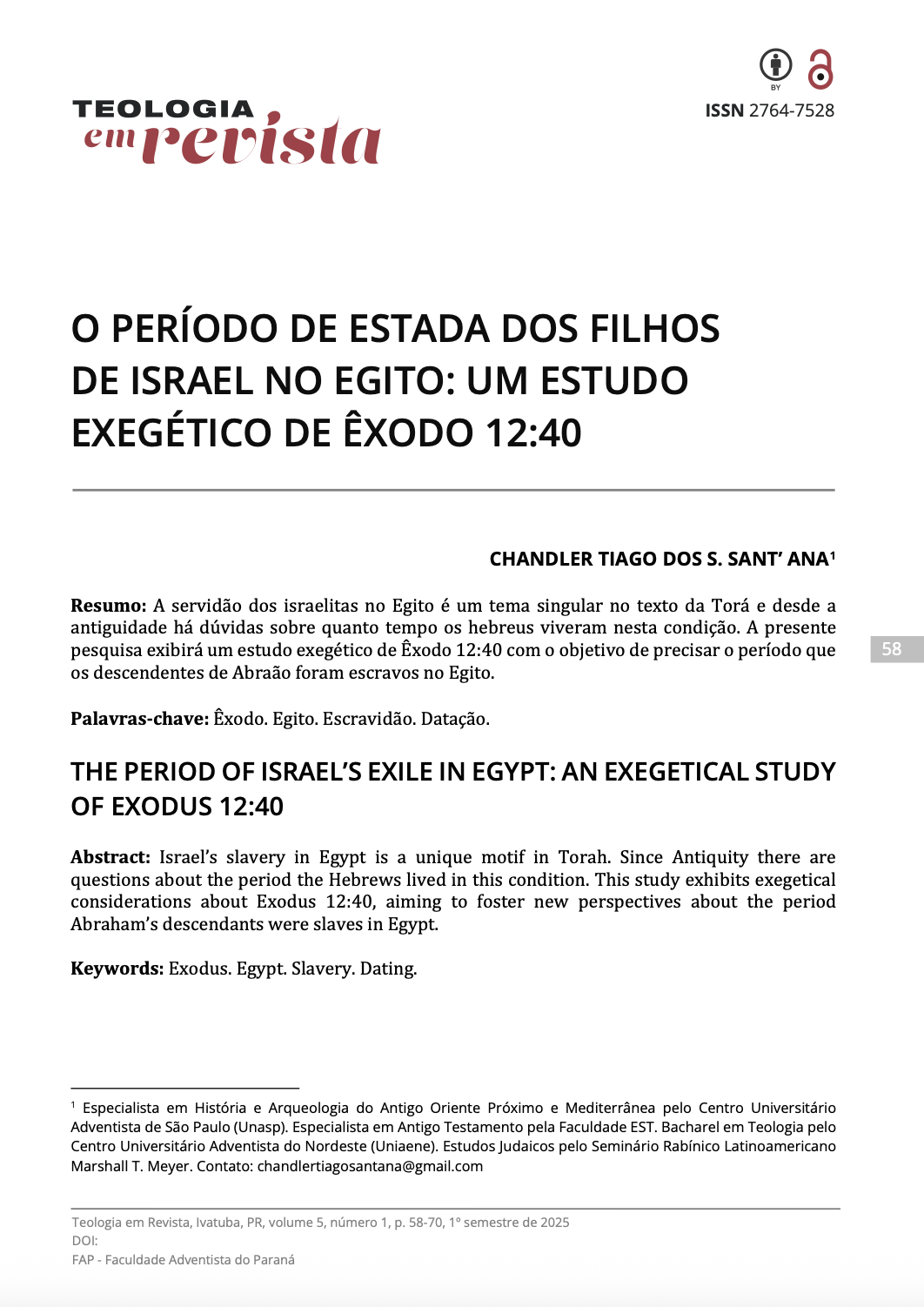 - O período de estada dos filhos de Israel no Egito: Um estudo exegético de Êxodo 12:40;